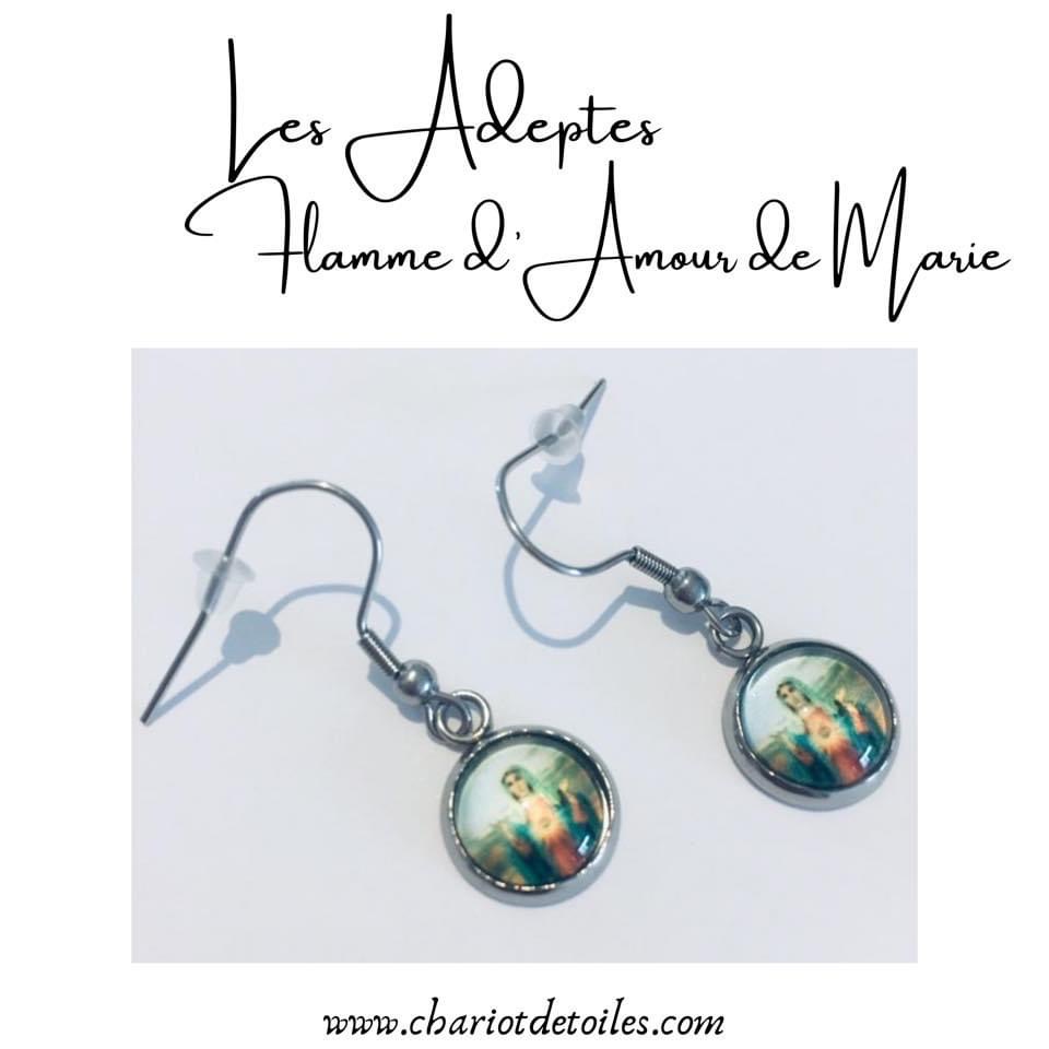 Les Adeptes : Création artisanale, apprêts en acier inoxydable, cabochon Flamme d’amour de Marie