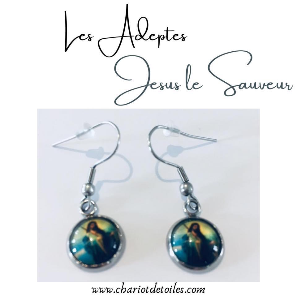 Les Adeptes : Création artisanale, apprêts en acier inoxydable, cabochon Jésus le sauveur