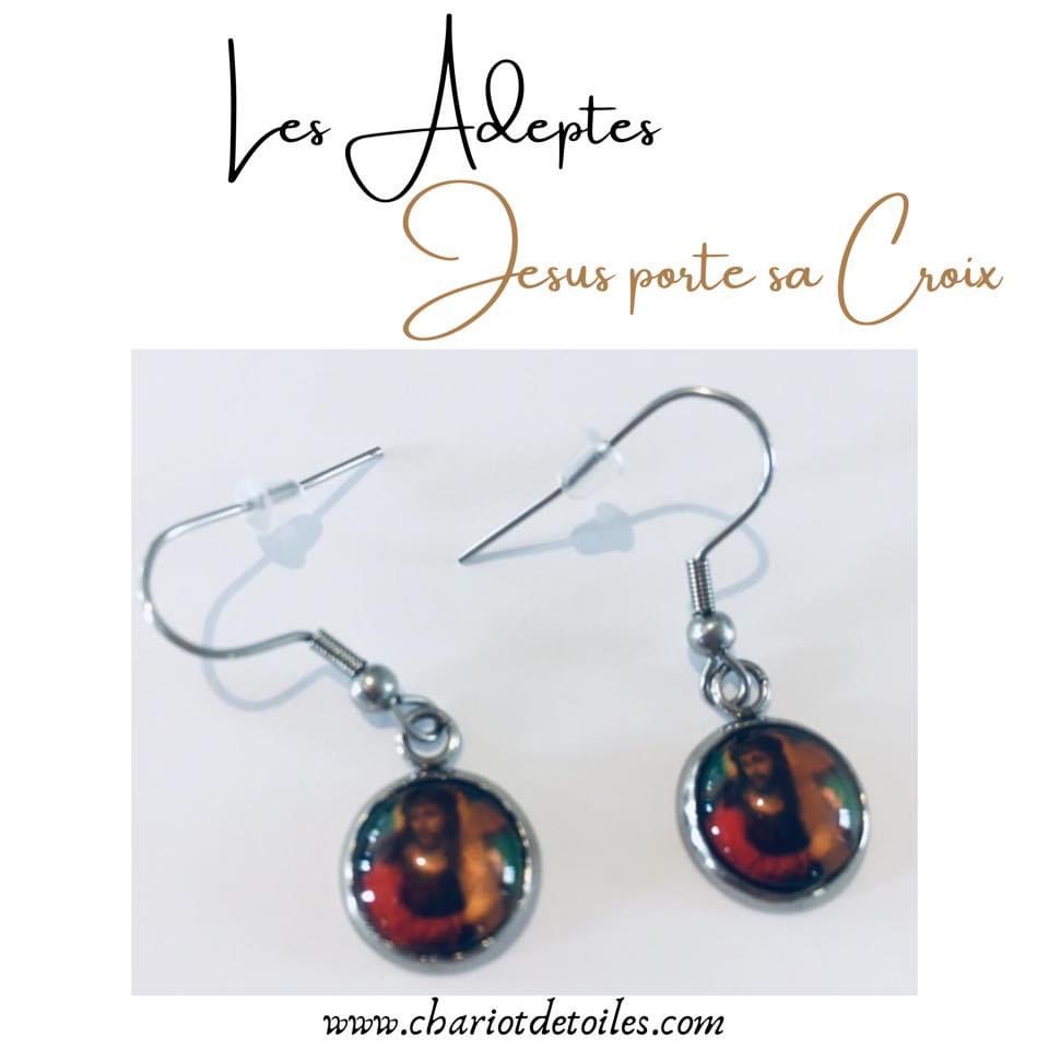 les Adeptes : Création artisanale, apprêts en acier inoxydable, cabochon Jésus porte sa croix.