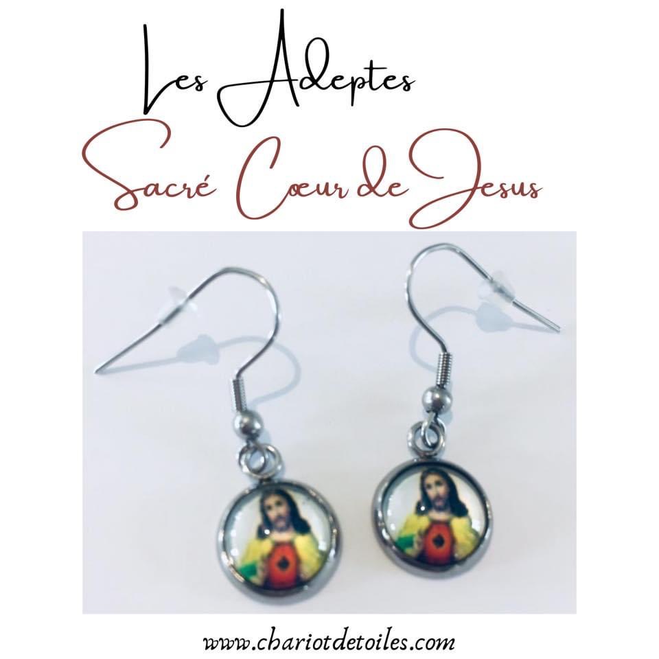 Les Adeptes : Création artisanale, apprêts en acier inoxydable, cabochon Sacré cœur de Jésus.