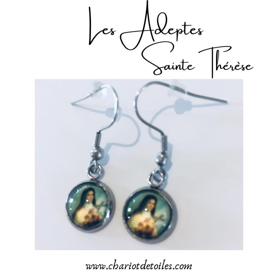 Les Adeptes : Création artisanale, apprêts en acier inoxydable, cabochon Sainte Thérèse