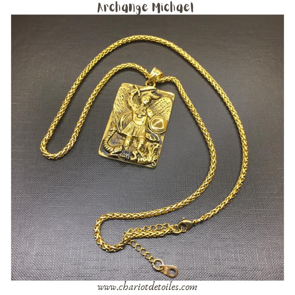 Pendentif Archange Michael pour homme en acier inoxydable avec sa chaîne.