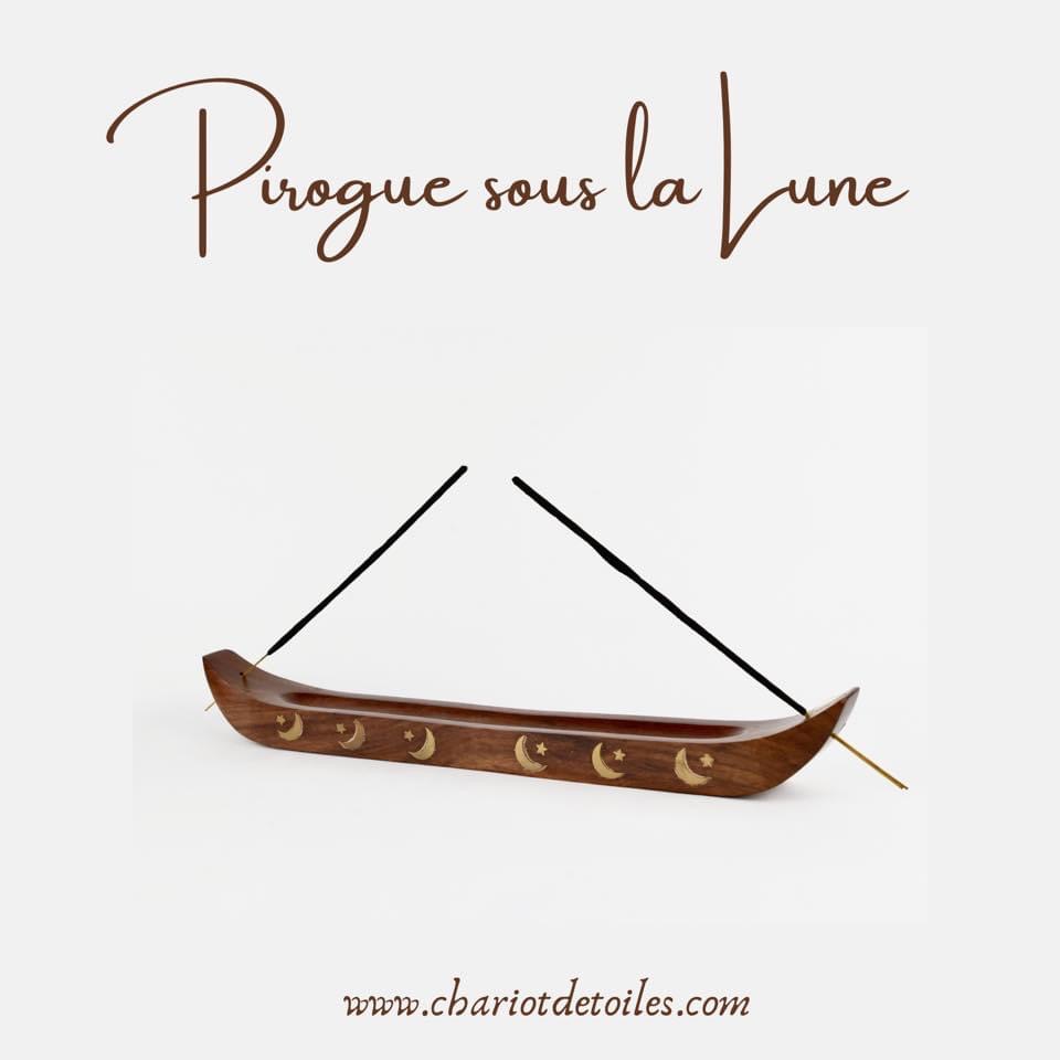 Pirogue sous la lune. Porte encens en bois pour bâtons.